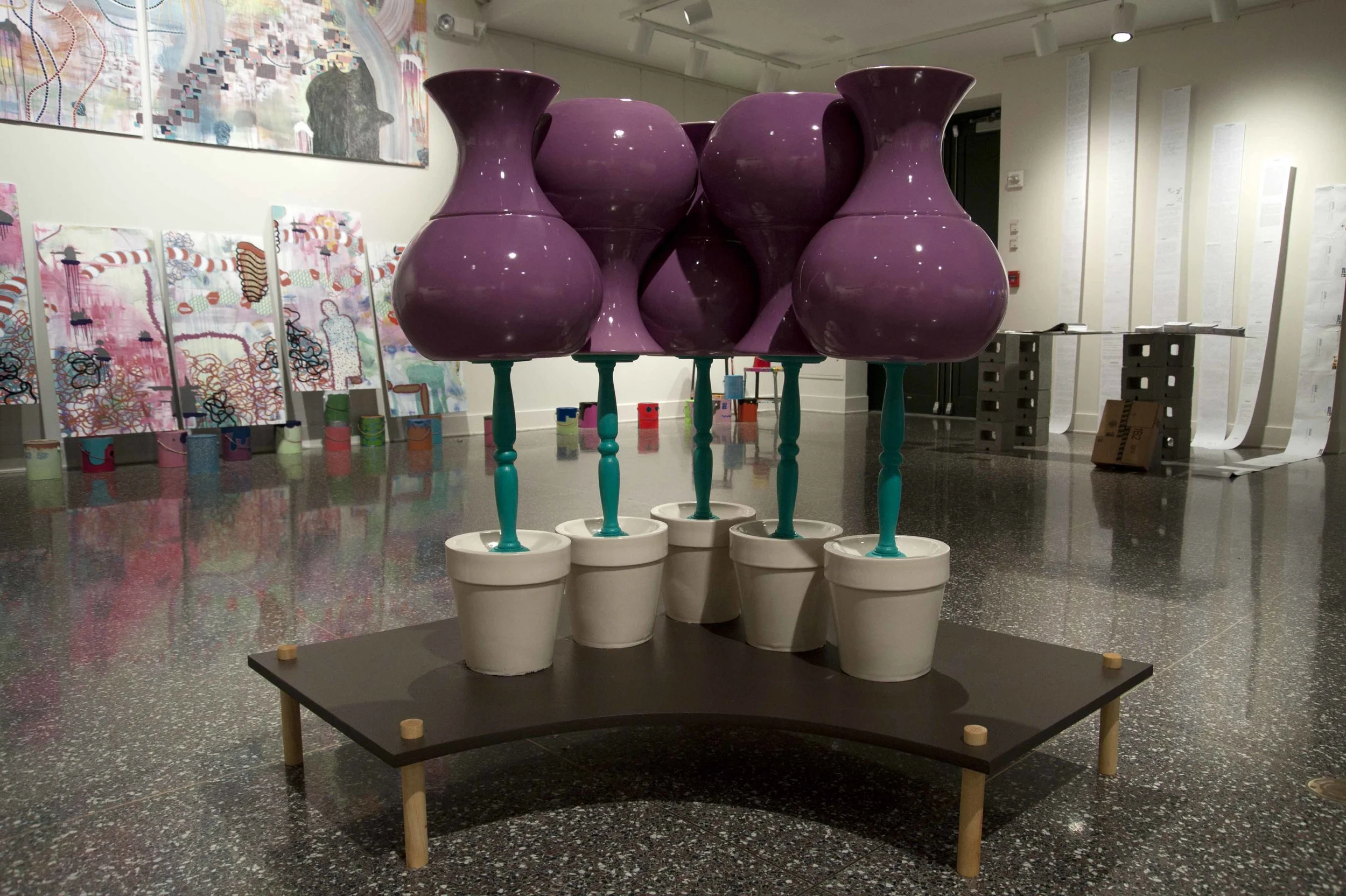 In May 2015, I received my Master of Fine Arts in ceramics from SUNY New Paltz. In my thesis semester, I installed a gallery exhibition that was supported by a dissertation, which explored the function and perception of a vase and how our relationship to it has shifted over time.